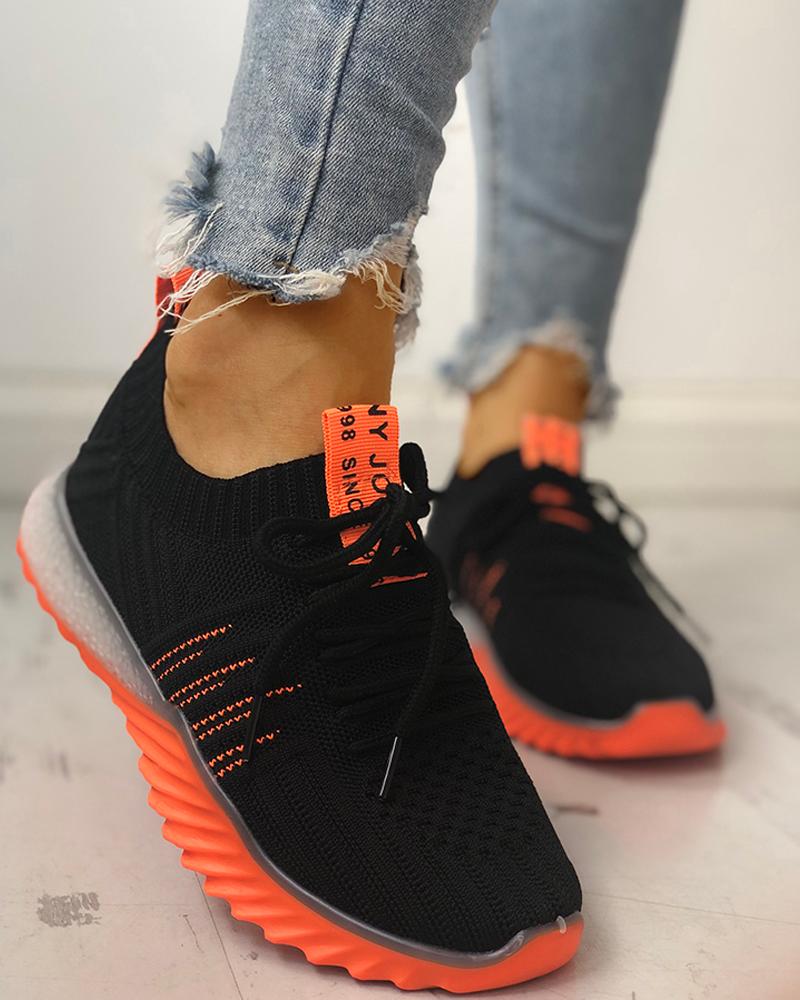 Colorblock Knitted Breathable Lace-Up colorblock knitted breathable sneakers