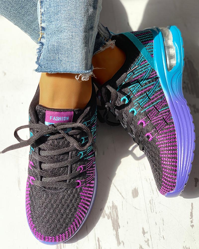 Knitted Breathable Lace-Up Casual colorblock knitted breathable sneakers