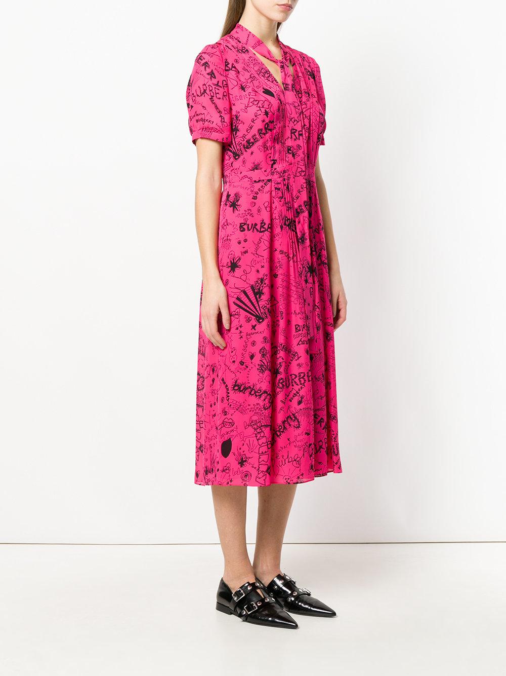 Burberry Silk Doodle Print Tie Neck pink burberry dress