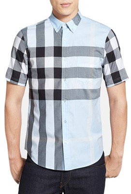 Burberry brit mens fred sky blue short burberry shirt light blue