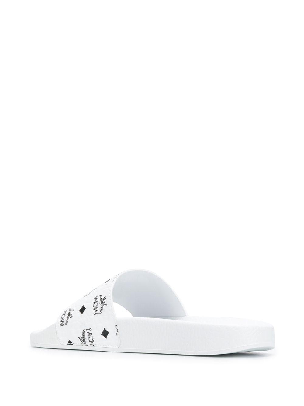 MCM Leather Visetos-print Pool Slides mcm white slides