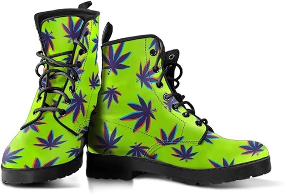 Marijuana Weed Pot Leaf Pattern vegan leather boots womens