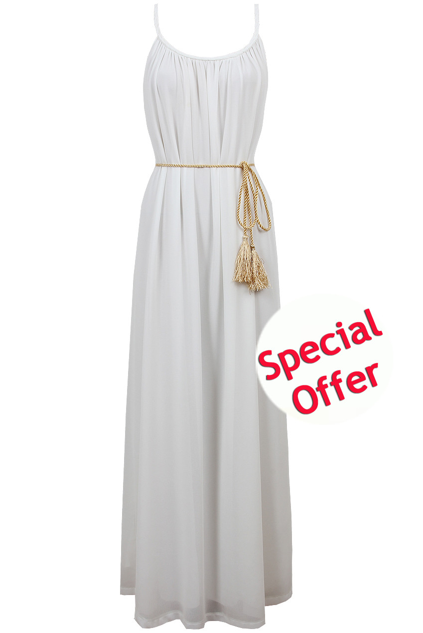 Cream Pleated Rope Belt Detail Maxi Dress rope belt dress