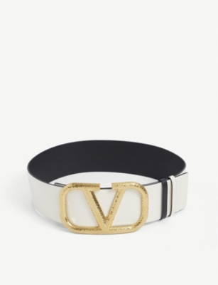 Reversible V-logo leather belt valentino wide belt