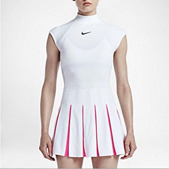 Nike Court Power Pleat Tennis Dress pink and white nike dress